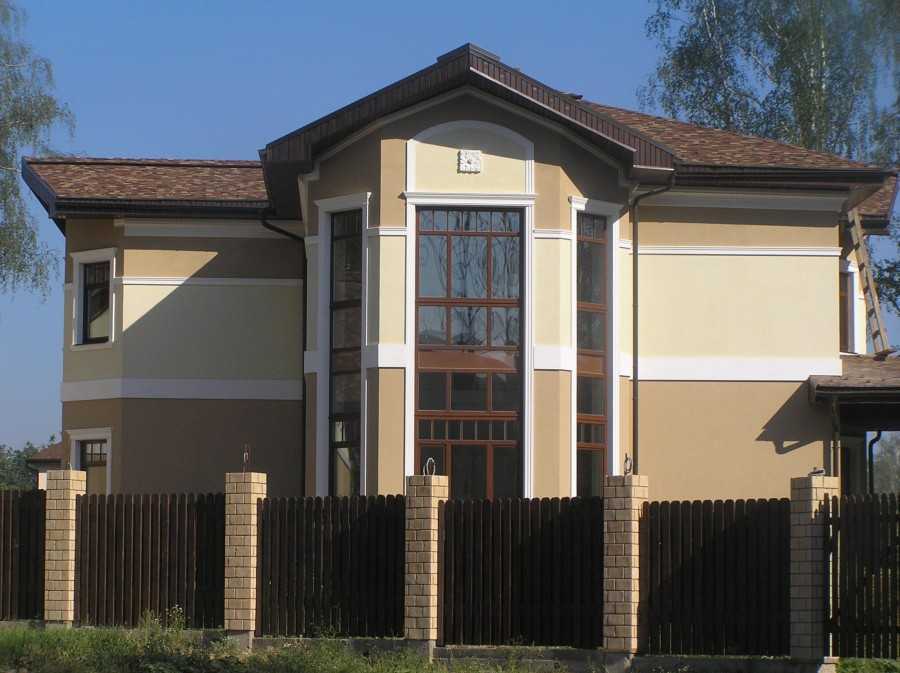 - На последнем этапе производится финишная отделка декоративных конструкций. Все ее элементы грунтуются специальными составами, предназначенными для обработки пенополистирола. Затем можно приступать к покраске деталей или их отделке с помощью декоративной штукатурки. Для окрашивания пенопластовых конструкций следует использовать акриловые составы без содержания в них ацетона и других растворителей, оказывающих разрушительное действие на материал фасадного декора.