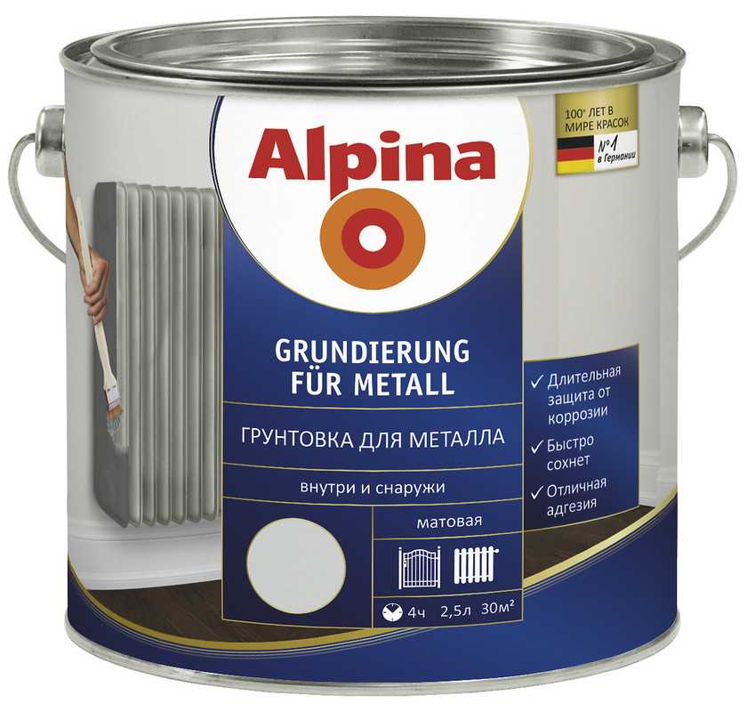 - алкидные грунтовки для металла. Они наиболее часто применяются, в сравнении с другими видами. Изготавливаются на основе алкидного лакового материала, к которому добавляются различные стабилизаторы и присадки. Смеси могут быть коричневыми или серыми. Они относятся к категории быстросохнущих и довольно прочных грунтов, защищают основание металла как изнутри, так и снаружи, создают крепкую основу, которую можно покрывать практически любым финишным материалом;