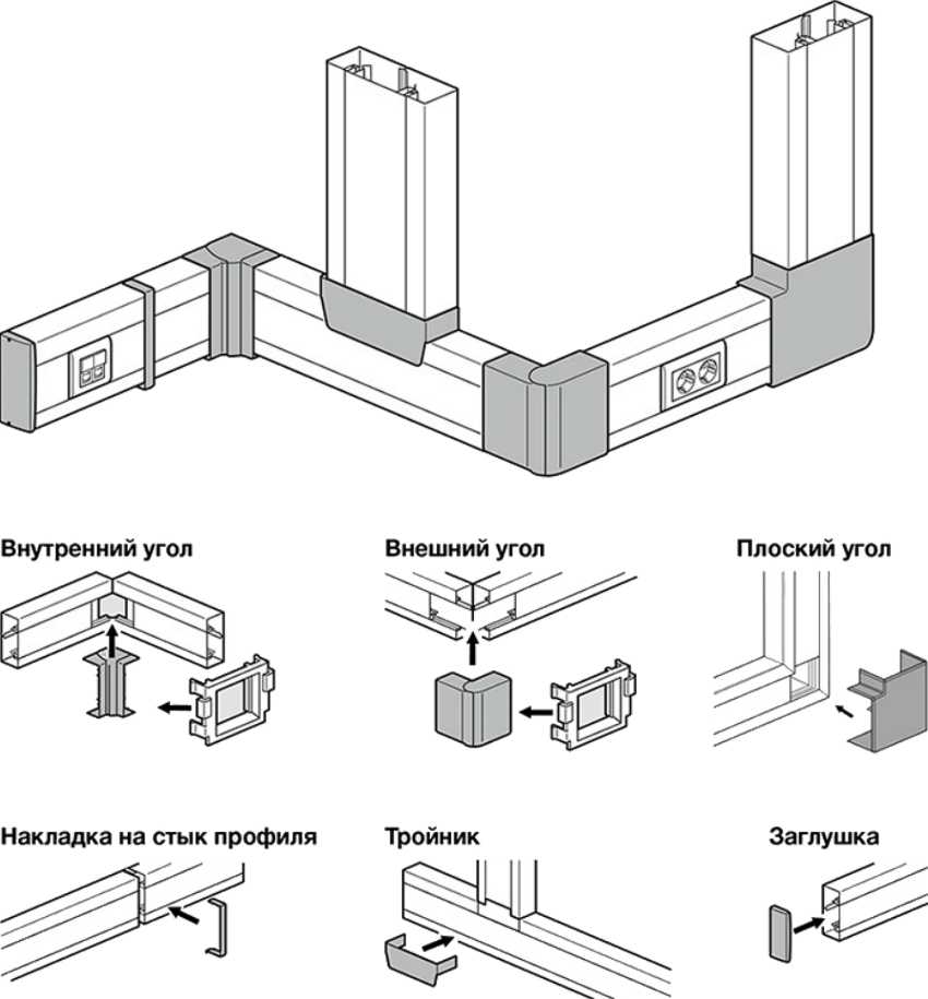 Схема соединения кабель-канала при помощи дополнительной фурнитуры