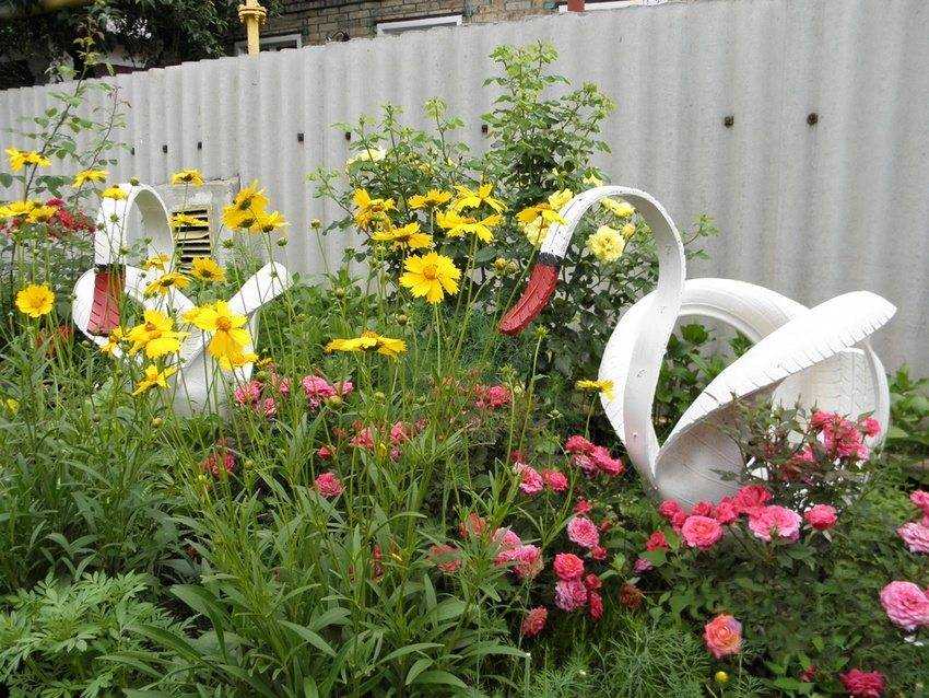 Клумба — не единственный предмет, который можно создать на основе автомобильной шины. Интересные решения по оформлению садового участка: