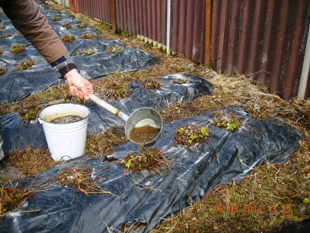 На следующий год для удобрения используют 1 ст. л. сульфата аммония и 2 ст. л. навоза на 10 л воды. Весной состав льют под каждый куст.