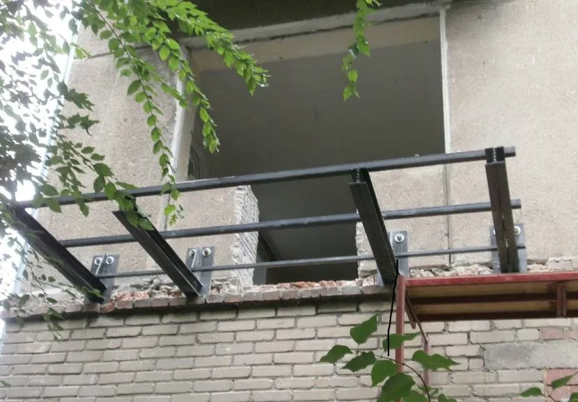 Если же используются сварные кронштейны, тогда их обычно создают из металлических уголков. Опорные детали имеют вид равнобедренного треугольника. После закрепления этих элементов на стене здания на них наваривается металлический балконный каркас.