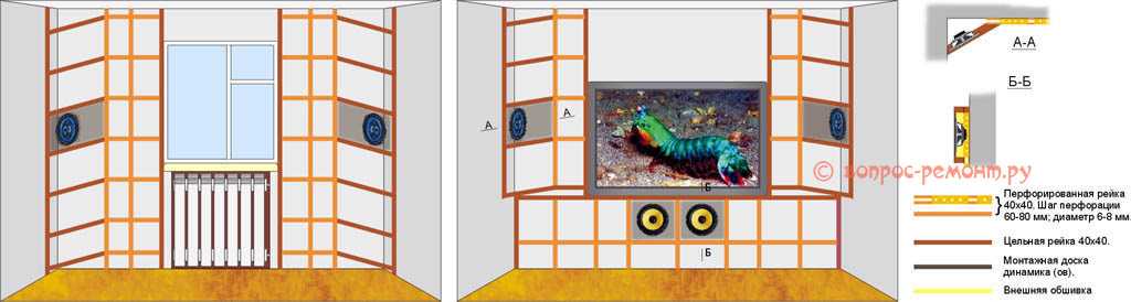 Схемы обрешетки под обшивку стен гипсокартоном с установкой встроенной акустики