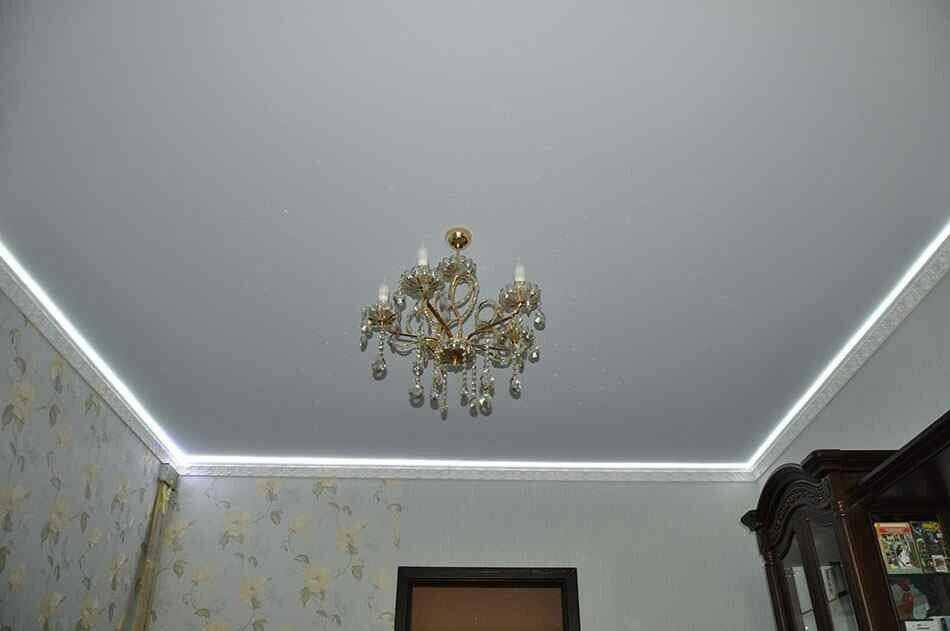 Еще одно преимущество – всего за несколько часов создается идеально ровная поверхность потолка, которая скроет все шероховатости и неровности основного потолка. Также можно будет легко установить необходимое освещение – как стильное точечное, так и обычную люстру