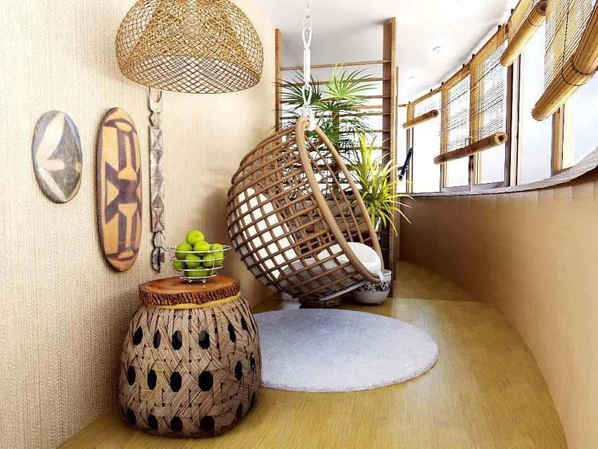 Для создания максимально рабочей атмосферы интерьер лоджии должен обладать звукопоглощающими свойствами. Это деревянные, пробковые или виниловые обои на флизелиновой основе.