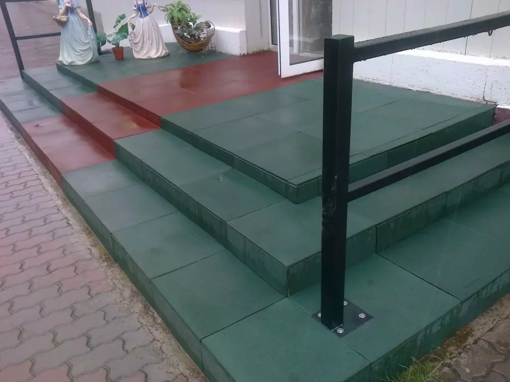 Такая отделка обычно кладется на крыльцо из бетона или кирпича. Перед облицовкой, следует тщательно выровнять поверхности. На бетон стяжка просто так не ляжет, будет отслаиваться, и попортит облицовку, поэтому рекомендуется прибить дюбелями металлическую сетку, а затем приступать к выравниванию. Чтобы не скапливались осадки, ступени следует сделать с уклоном от горизонта на 1-2о.