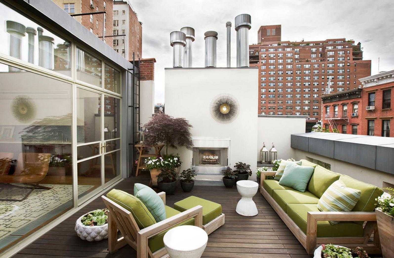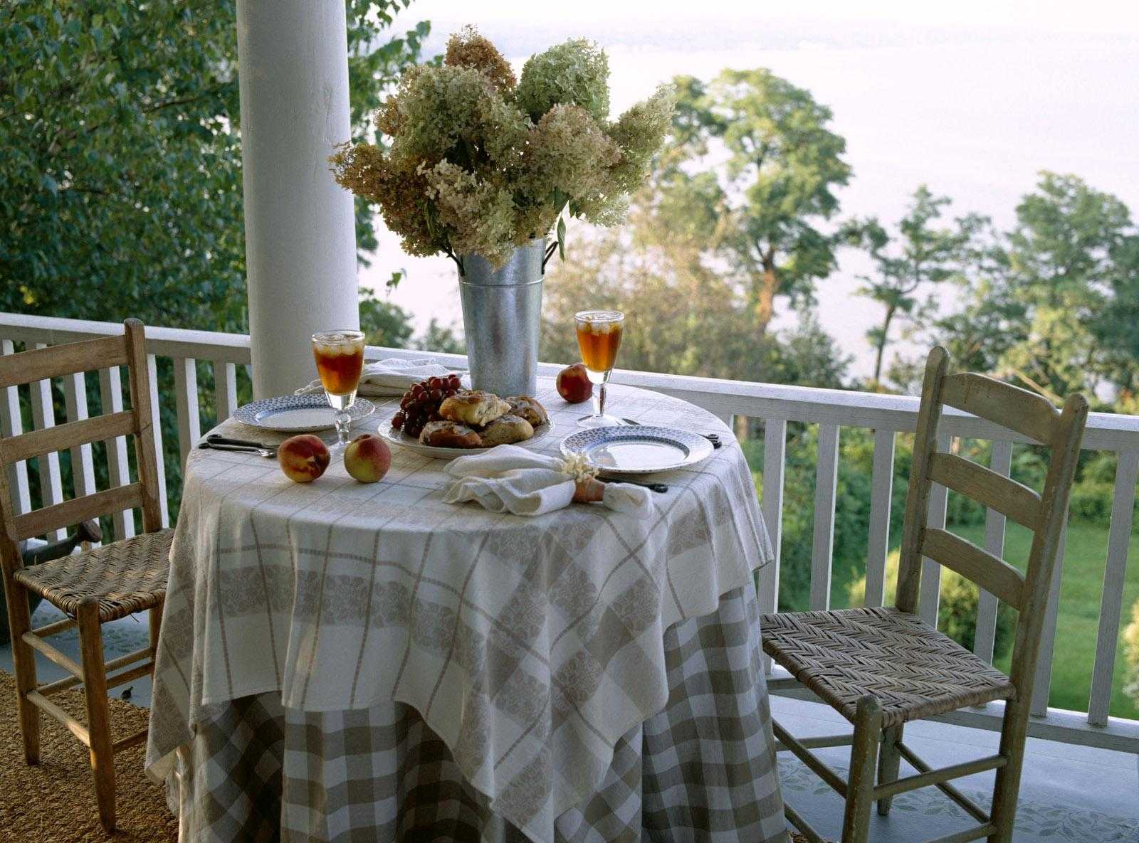 Начнем с расстановки мебели: кто сказал, что сиденья должны находиться исключительно напротив перил? Сохранить больше свободного места помогут сидушки вдоль ограждений: вид с них не менее прекрасен, чем если сидеть напротив.