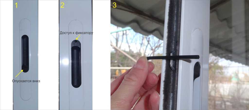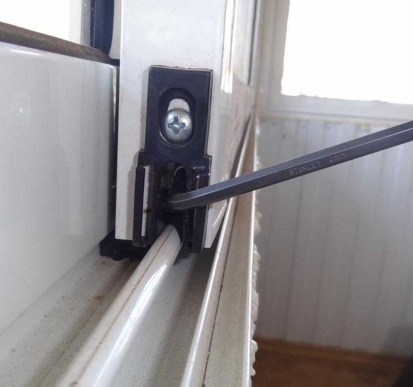 В ситуации, когда проблема связана с сильным углублением язычка в оконную раму на балконе, нужно аккуратно сдвинуть ручку открывания вниз, поместить в освободившееся отверстие шестигранник размером 3 мм и повернуть фиксирующий винт. Проворачивать шестигранный ключ следует в противоположном направлении от нахождения фурнитуры.