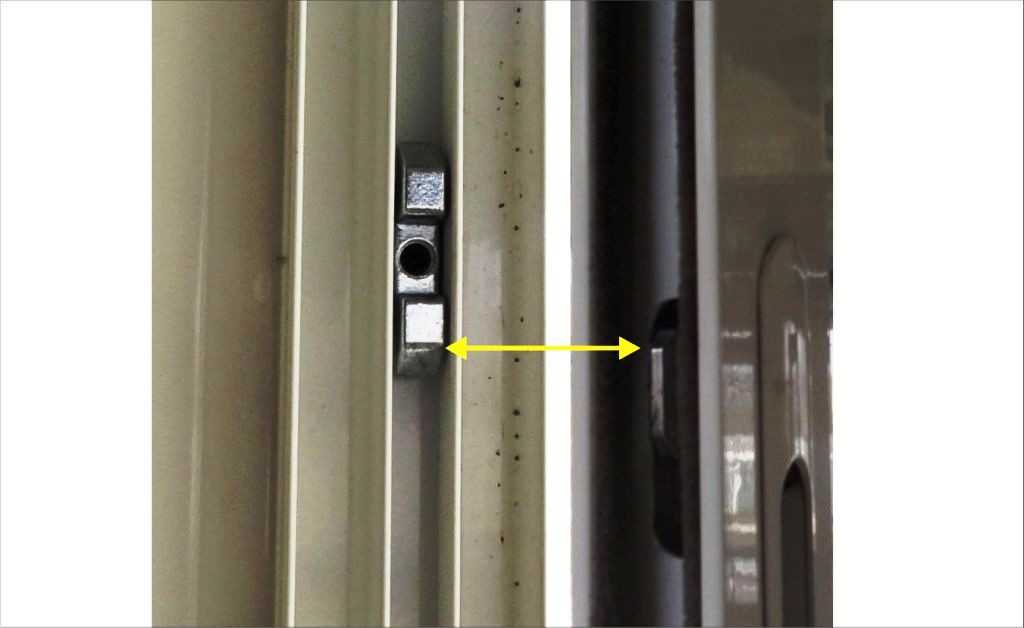 Процедура регулировки защелки зависит от типа проблемы. Если отсутствует сцепление язычка с планкой из-за размещения на разных уровнях, то достаточно только передвинуть ответную деталь на требуемую высоту. Для этой цели планку откручивают, воспользовавшись шестигранником с основанием 2,5 мм. Когда планка будет беспроблемно передвигаться по раме, ее устанавливают так, чтобы нижняя перед скосом грань ответной детали расположилась на одной высоте с верхней частью язычка защелки.
