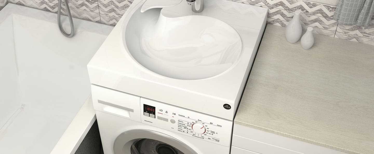 При монтаже стиральной машинки и умывальника над ней стоит учитывать некоторые конструктивные особенности устройства и сантехники.