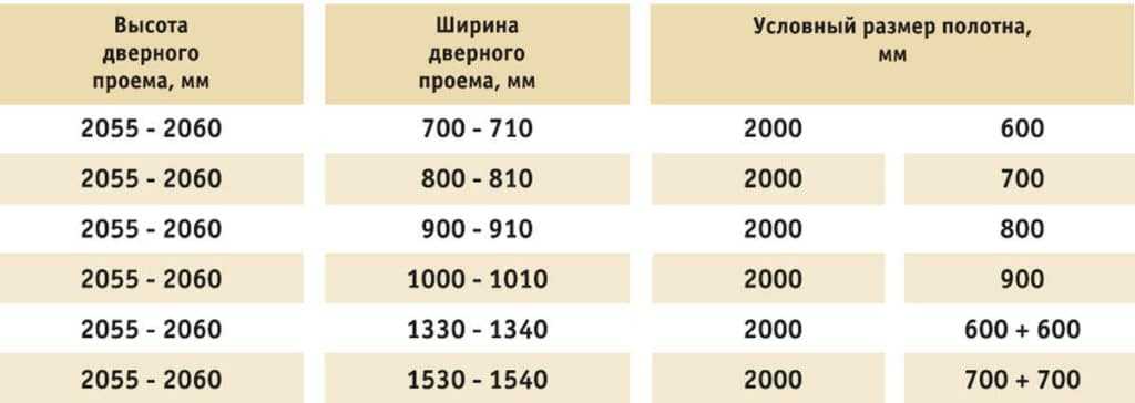 Наиболее распространенные размеры межкомнатных дверей — 710, 810, 910 и 1010 мм. Двустворчатых — 1340, 1540 и 1840 мм. Стандартная высота дверного проема — 2055-2060 мм, но по факту может отличаться в большую сторону.