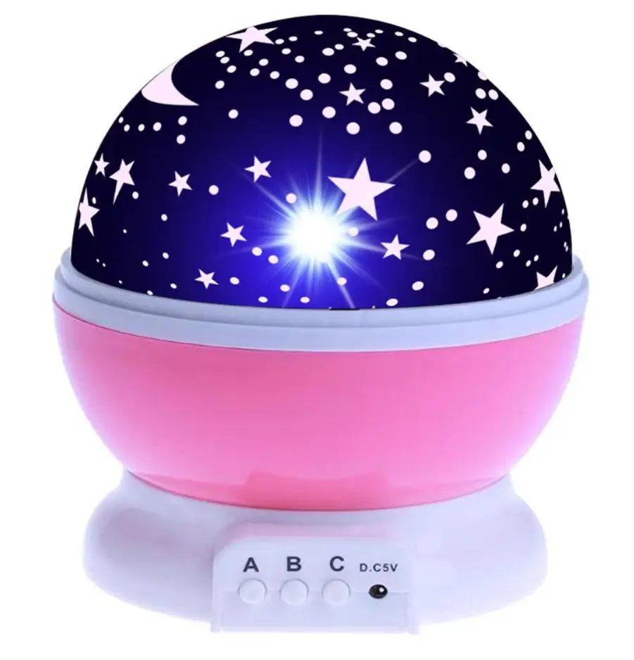 Проектор поможет создать космическое волшебство в детской комнате. Управляется кнопками, расположенными на корпусе, либо при помощи пульта. Угол наклона регулируется, таймер устанавливается на 45 или 90 минут. Эффект цветной туманности создает атмосферу романтики в доме. Светит достаточно ярко. Такое ощущение, что вы находитесь в усыпанной звездами комнате. Можно включать по отдельности звезды или использовать эффект туманности, выбрав необходимую скорость вращения. При желании используется в качестве ночника с функцией выключения через определенное время.