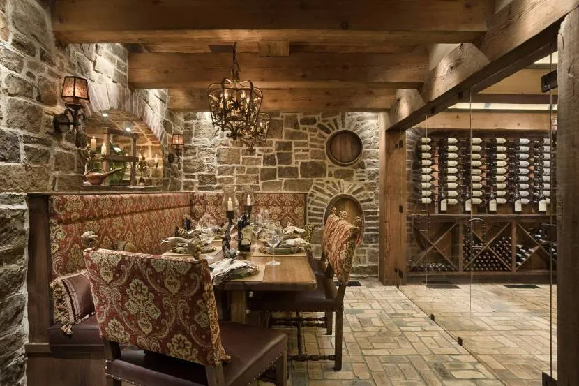 Винный погреб – место, которое просто создано для того, чтобы оформить его в каком-нибудь необычном стиле. Конечно, дополнить интерьер роскошным ковром или шкурой не получится из-за высокой влажности, но и без этих атрибутов помещение легко преображается с помощью соответствующих отделочных материалов и деталей декора. Выбор дизайна ничем не ограничен, но особенно популярны следующие стили: