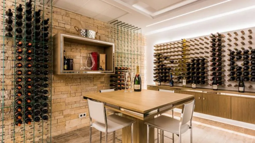 Винный погреб стараются спроектировать так, чтобы хватило места на две функциональные зоны: хранения и дегустации. Для хранения традиционно используют стеллажи, полки, винные шкафы, которые устанавливают вдоль стен, а, если помещение позволяет, могут занимать и центральную часть.
