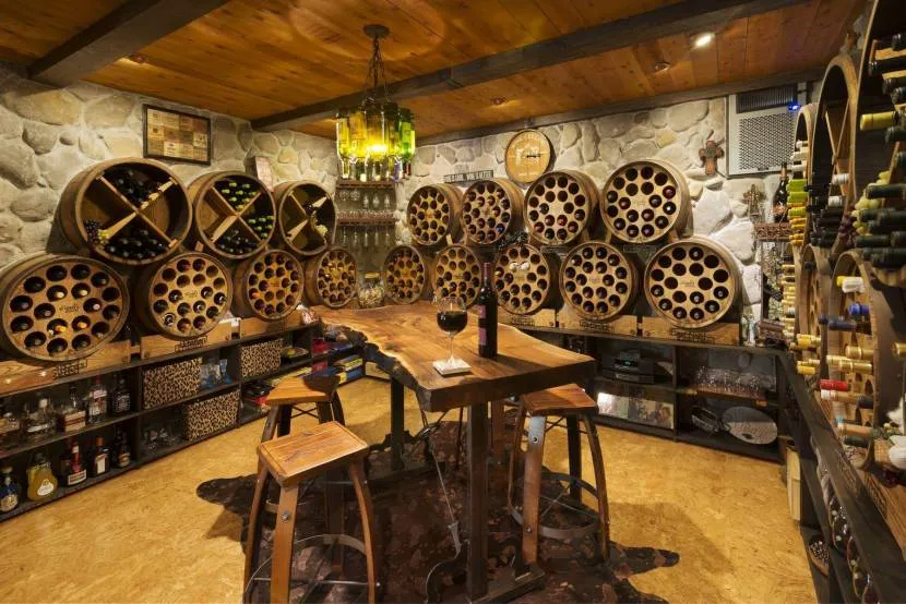 Главная функция комнаты – сохранить вкусовые свойства вина; для этого помещение должно «уметь» поддерживать определенный режим температуры и влажности. При сооружении хранилища используют экологичные материалы, устойчивые к повышенной влажности и не имеющие запаха. Также обустраивают приточно-вытяжную вентиляцию, ставят герметичные двери, изолируют комнату от постороннего тепла.