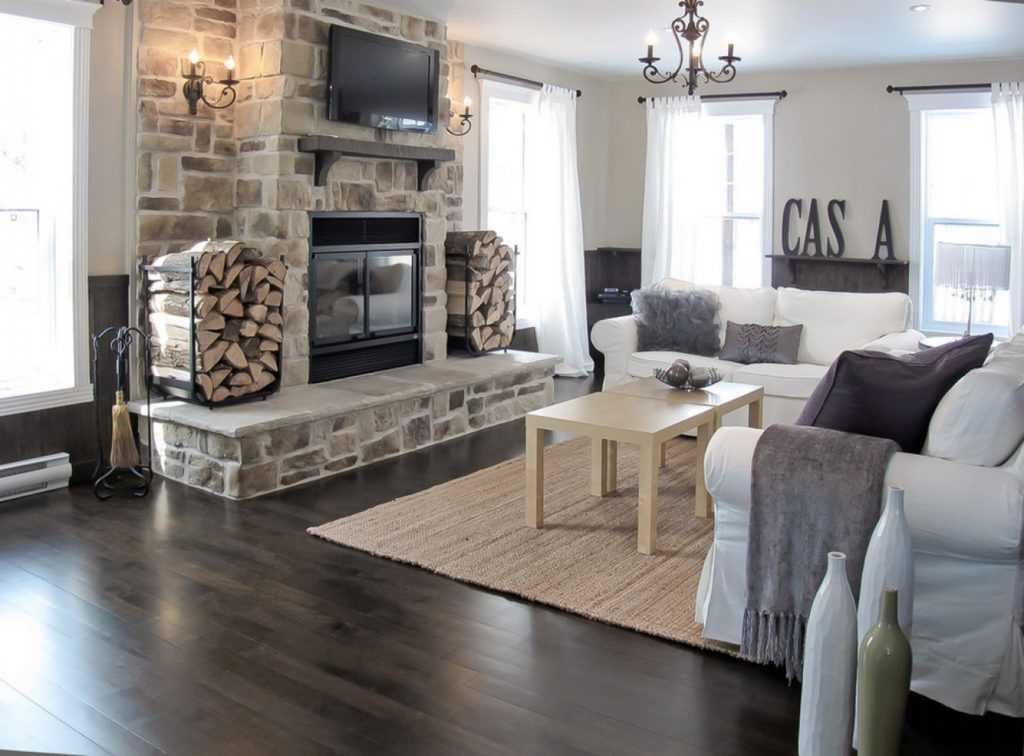 - Пристенно-угловой камин. Этот камин очень схож с пристенным видом, единственным различием является установка камина ближе к углам комнаты, что прекрасно подходит для владельцев небольших помещений.