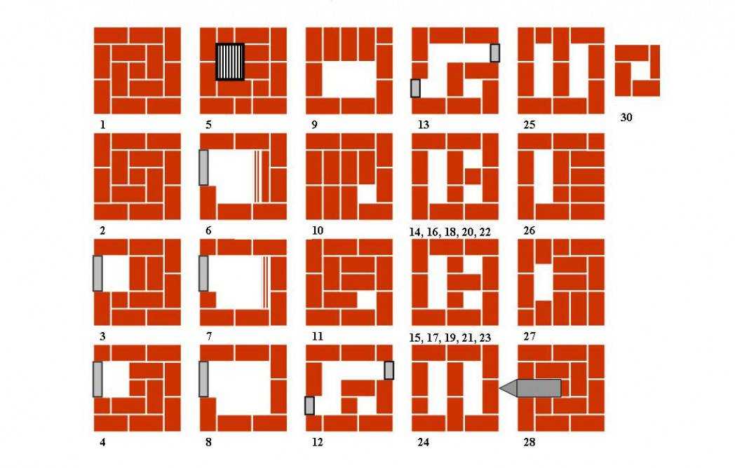 Порядовая схема прямоугольного камина 5×2,5 из кирпича