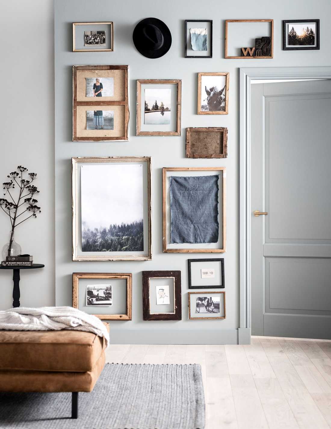 Если же вы хотите пойти сложным, но и более интересным путем, и сочетать совершенно разные рамки и фотографии, тогда помните о необходимости визуально уравновесить композицию по центру и о том, что рамки должны располагаться на примерно одинаковом расстоянии друг от друга.