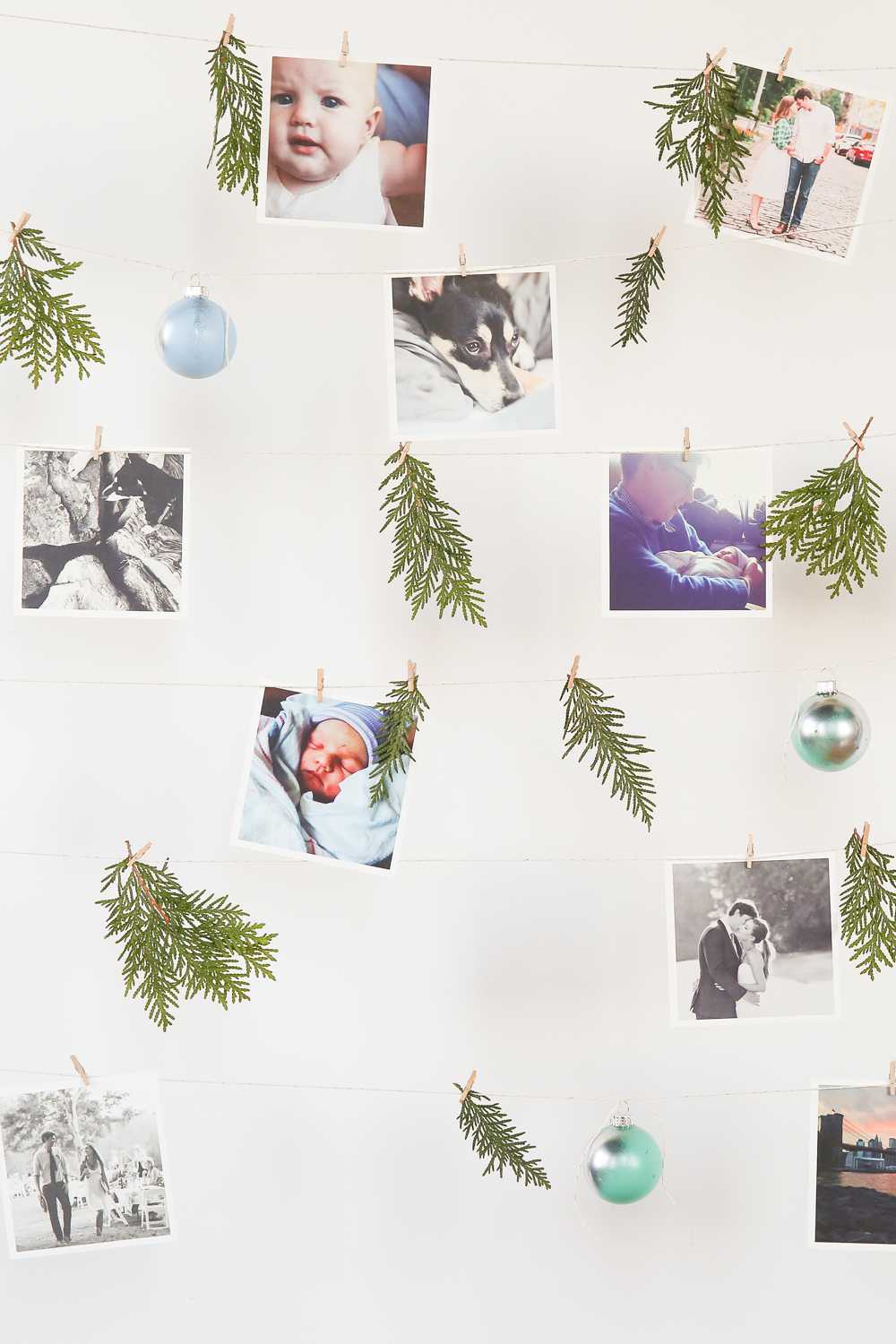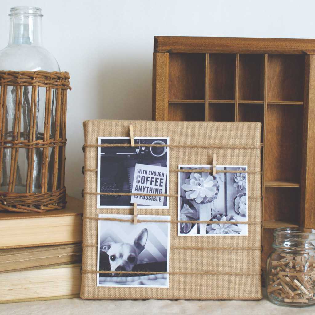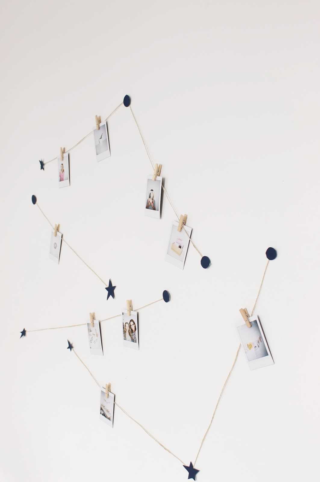 Снимки в ретро-рамке, подвешенные на бельевых прищепках