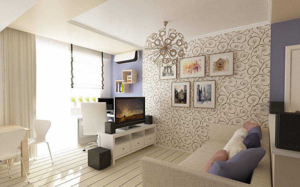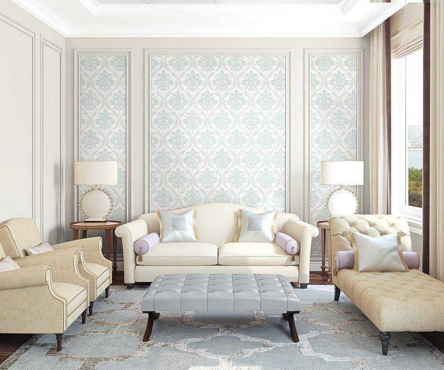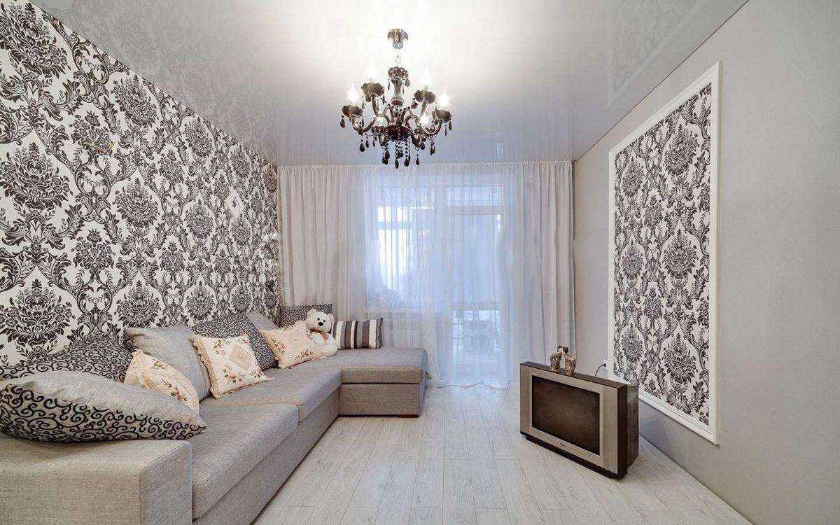 Украшением гостиной может стать участок стены, оклеенный обоями, отличающимися по цвету, узору или фактуре.