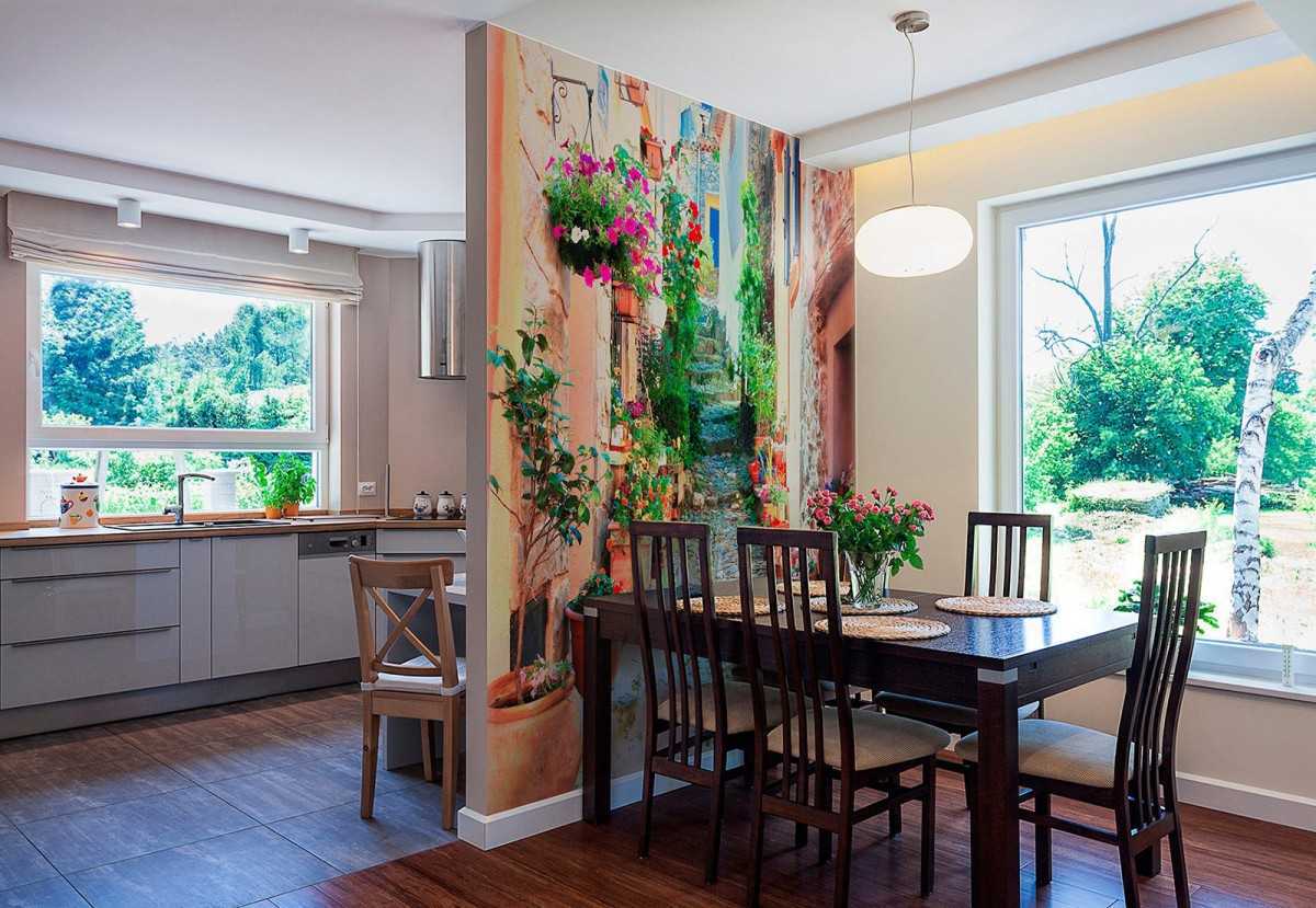 Чтобы выбрать подходящие фотообои на кухню небольшого размера, необходимо рассмотреть 3 Дэ фотообои, на которых изображены открытые окна, просторы, террасы, расширяющие пространство малогабаритного помещения.