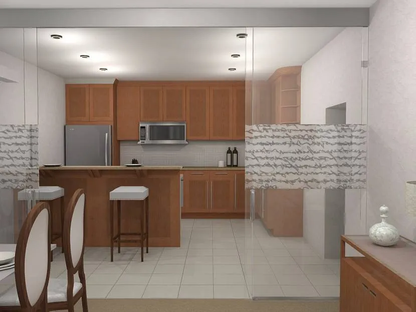 Открытый проем. Саамы простой и бюджетный способ, обеспечивающий нужную инсоляцию и циркуляцию воздуха. Подходит, если готовка для вас лишь хобби, или если вы озаботились установкой мощной вытяжки в зоне готовки. Иногда проем оформляется в виде арки, что актуально в некоторых дизайнерских стилях.