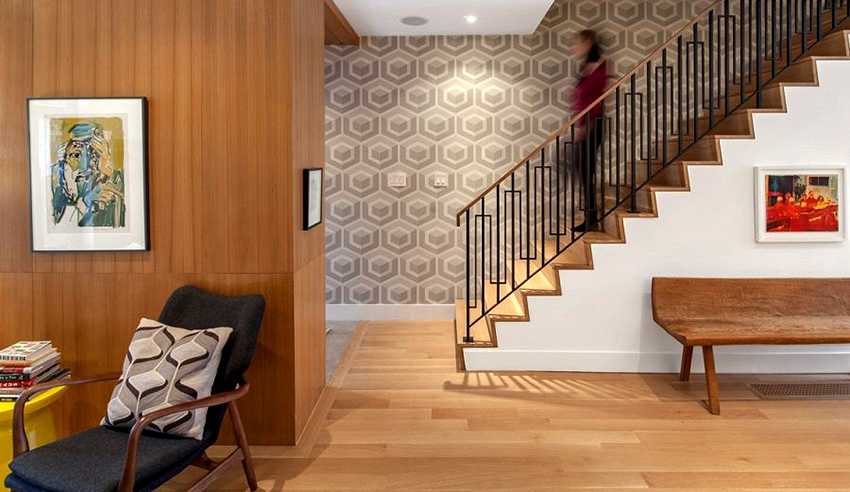 Если лестница в доме шириной до 1,25 м, то перила устанавливают с обеих сторон. При широкой лестнице (от 2,5 м) к тому же дополнительно устанавливают по центру поручни.