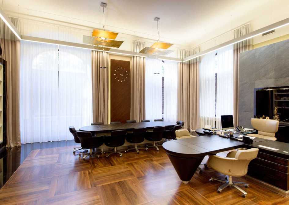 Отделочные материалы подобраны таким образом, чтобы гарантировать наряду с красотой здоровый микроклимат в офисных помещениях.