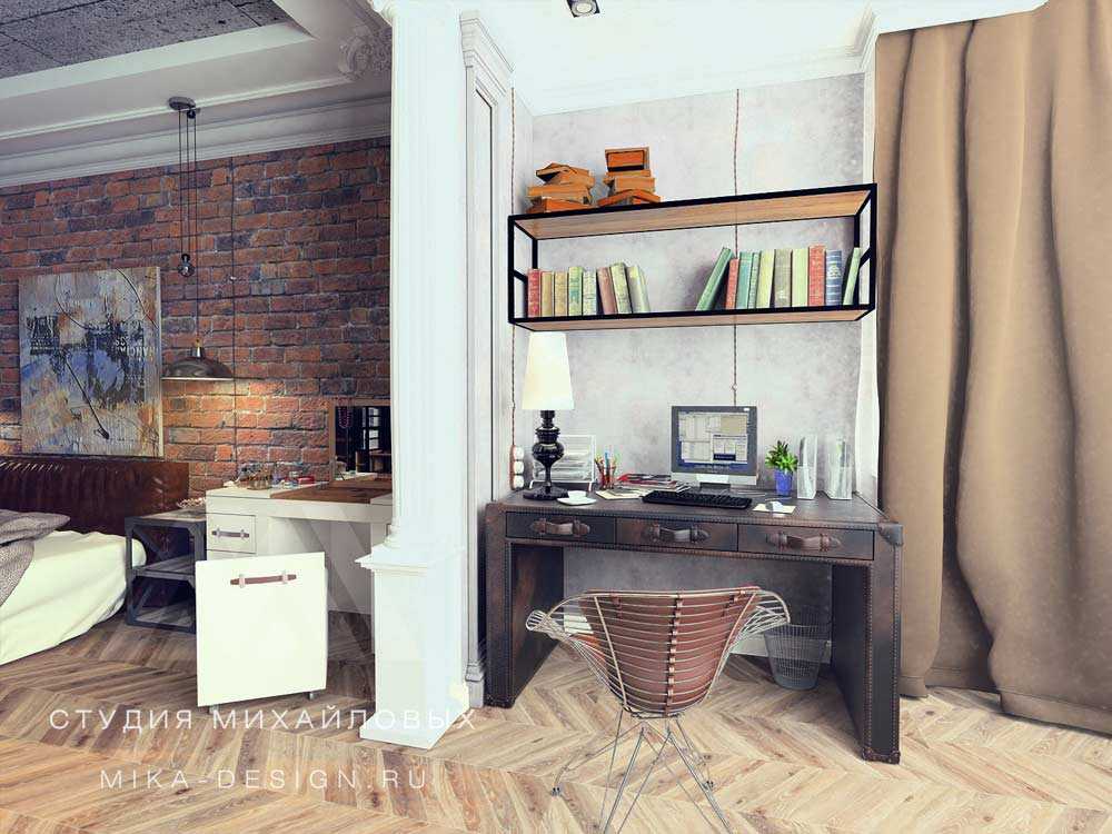 В лофте остаются на виду вентиляционные короба, электропроводка и трубы. Не обязательно прятать потолочные балки и выравнивать стену. Такие детали внесут своеобразный колорит в интерьер.