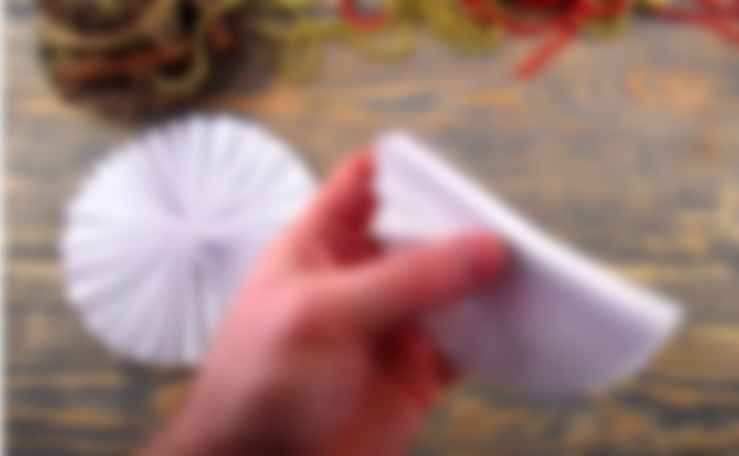 - Как и в первом мастер-классе, делаем круг гармошкой из красной бумаги, а также круг меньшего диаметра из красной и белой бумаги.