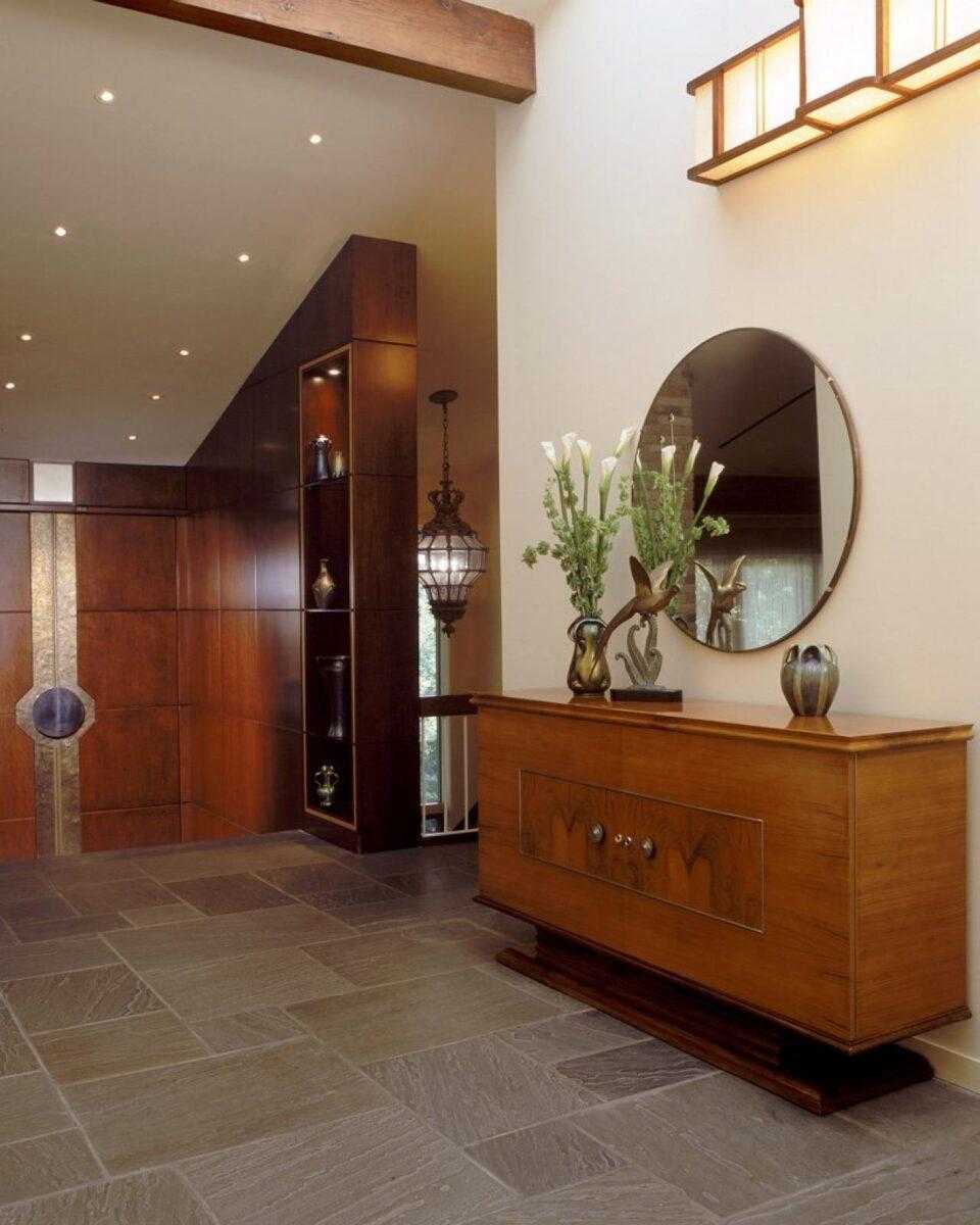 Зонируйте: раз у вас в распоряжении достаточно квадратных метров, выделите зону при входе, место для хранения, трюмо с зеркалом и т.д
