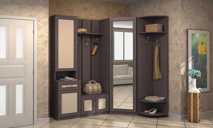 Встречаются такие планировки квартир, где двери ванной, кухни, подсобных помещений и всех комнат выходят в прихожую, и для размещения мебели остается лишь один свободный от дверей угол. Для таких случаев существуют угловые шкафы, они вместительны и могут «раствориться» в пространстве, если их фасады заменить зеркалами.