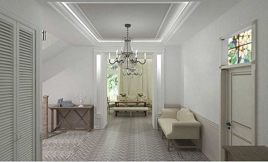 Если вам достался стандартный холл, его оформление зависит от формы помещения.