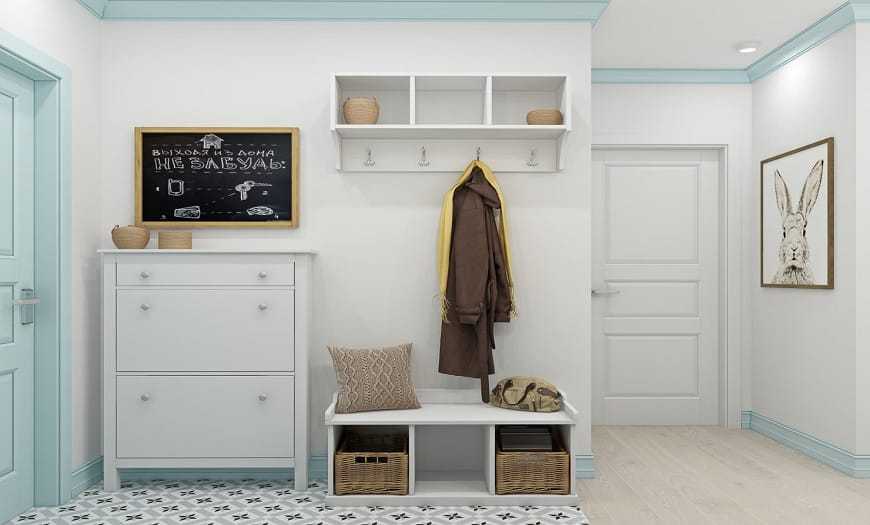 Максимально задействуйте вертикальные поверхности, будь то стена или дверца шкафа. На них можно повесить зеркало, обувницу, полки для мелочей, крючки для верхней одежды и сумок.
