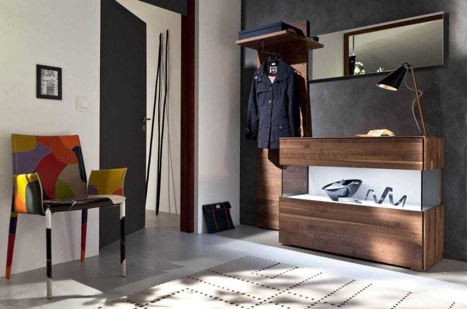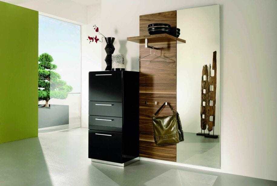 Вместить в крошечный коридор все на свете не получится, поэтому нужно выбрать необходимый минимум. Джентльменский набор: шкаф или комод, вешалка, полочка для шарфов, шапок и перчаток, место для обуви, зеркало.