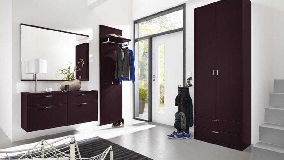 Важно, чтобы центральная зона прохода всегда оставалась свободной. Небольшой столик для мелочей и комод, а также полка для обуви с банкеткой должны располагаться с одной стороны, шкаф-купе – с другой