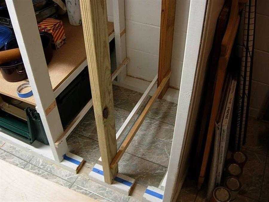 При сооружении полки стоит учитывать, что она должна выдерживать большие нагрузки. Так как большинство инструментов довольно тяжелые по весу. Поэтому в конструкции стеллажа должны присутствовать металлические усиления из арматуры.