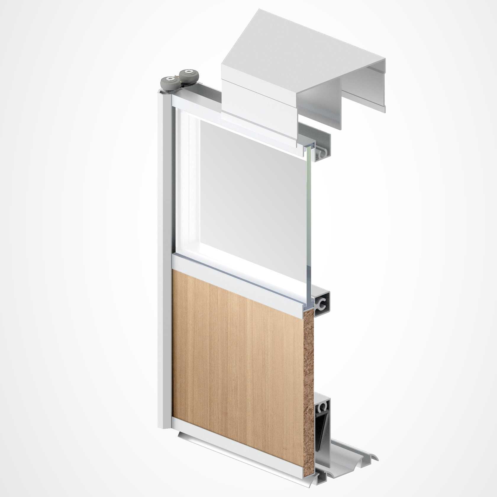 Включает в себя два профиля: верхний и нижний, закрепленные внутри каркаса шкафа. Внутри — железнодорожные направляющие, замаскированные на глаза. Именно по ним движутся ролики. Нижний профиль подвергается основной нагрузке, верхний служит опорой и выполняет направляющую функцию.