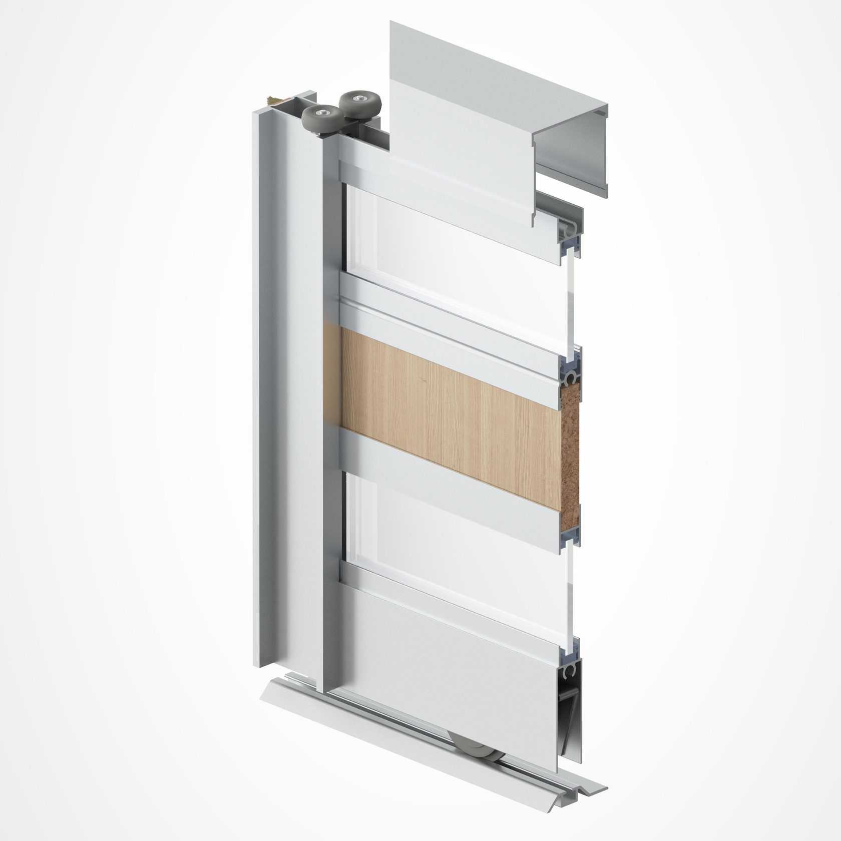 И верхняя, и нижние направляющие системы Premial устанавливаются внутрь корпуса шкафа-купе, двери двигаются внутри шкафа, поэтому такая система называется «вкладной» (в отличие, например, от навесной системы, где двери двигаются снаружи корпуса).