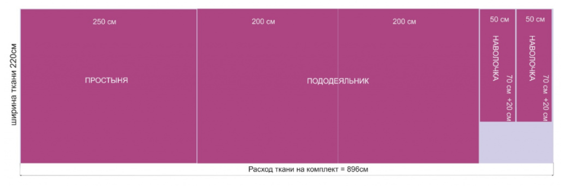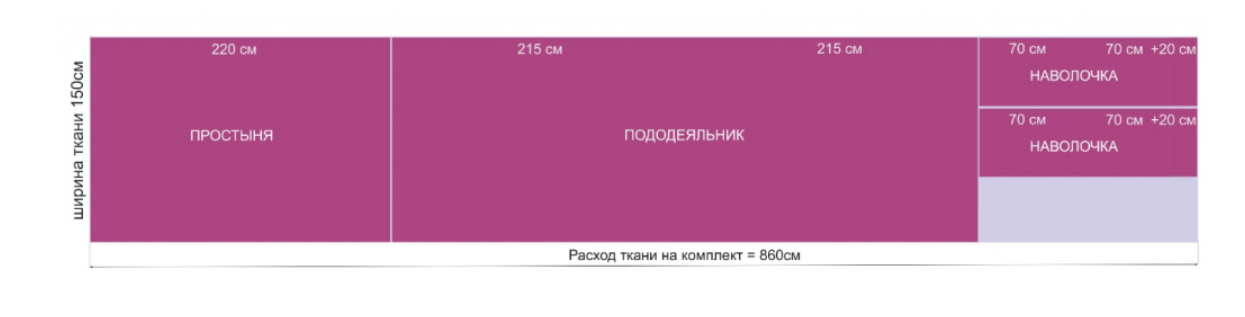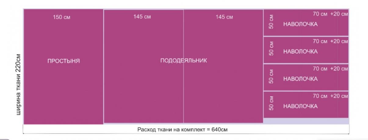 Ширина будущего отреза будет равна максимальному значению из полученных горизонтальных размеров. А длина выйдет из суммы длин вертикальных размеров всех деталей. К каждым 5 м ткани рекомендуется прибавить ещё по метру на оторочку, совмещение рисунка и так далее.