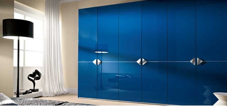 В зависимости от цвета шкафы с блестящим фасадом могут создавать разные эффекты: