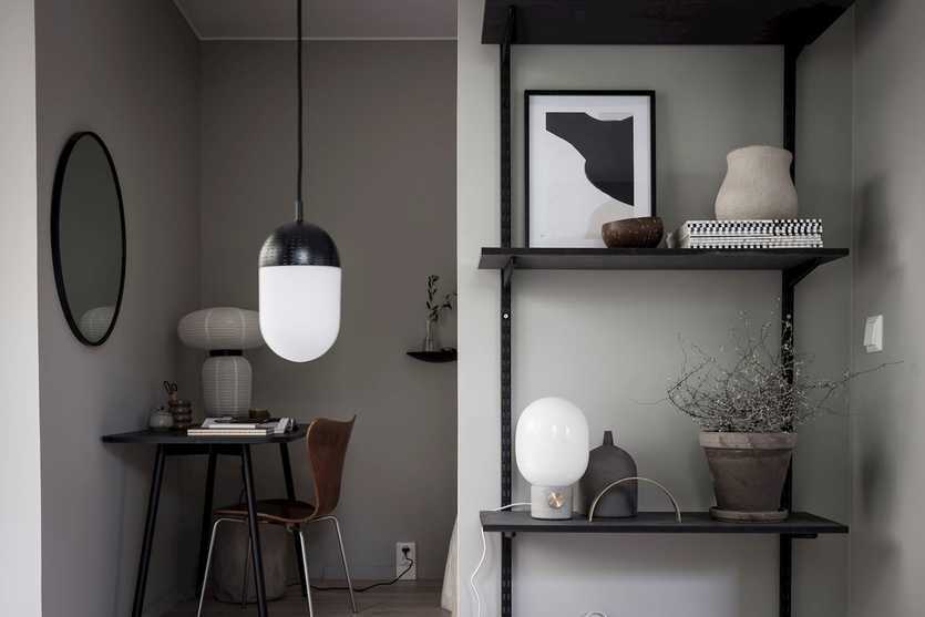 В современной скандинавской квартире преобладают светлые пудровые оттенки и очень часто встречается черно-белая контрастная монохромность декоративных элементов.