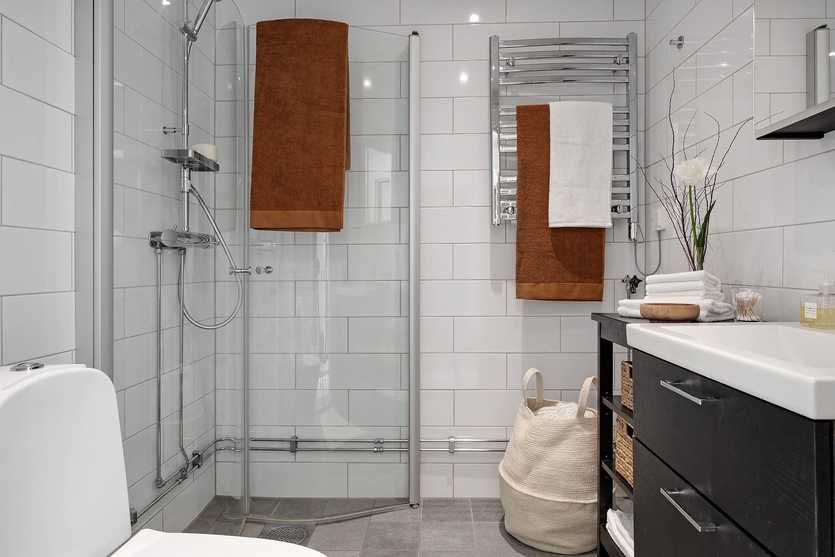 Исключение составляет напольное покрытие — для него стараются использовать натуральное дерево. В сканди часто применяют бук, ясень, дуб или сосну. Древесина этих пород имеет приятные светлые оттенки и делает общий интерьер визуально теплее. Полы могут быть деревянными во всех комнатах, кроме ванной — там такой выбор будет слишком непрактичным. Напольное покрытие редко окрашивают, стараясь подчеркнуть его природный оттенок. Если дерево всё же красят, обычно выбирают белый цвет.