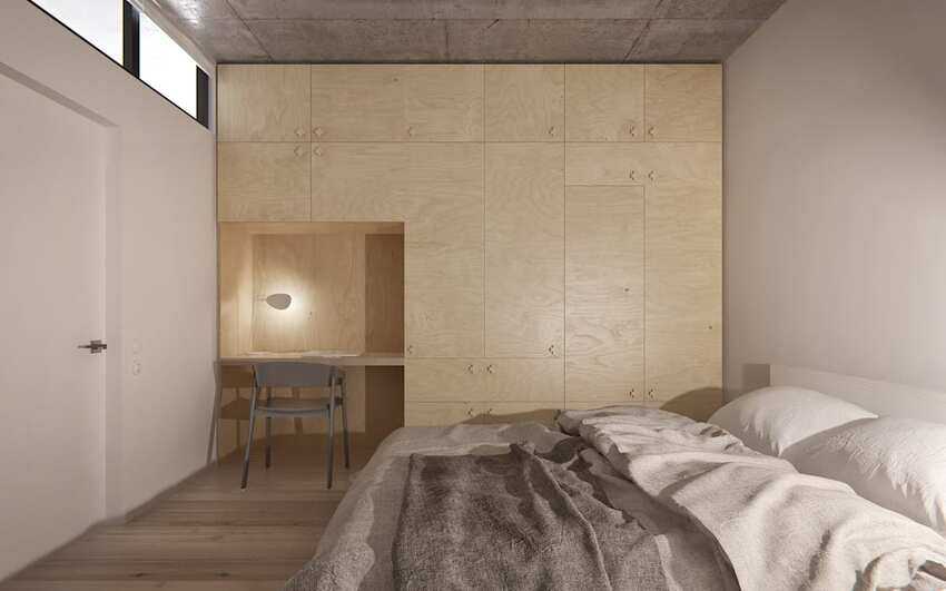 - Минимальное количество мебели, где каждый предмет выполняет несколько функций.