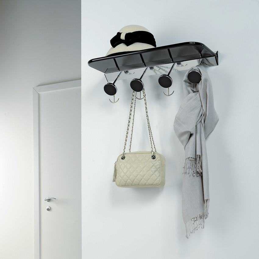 Компактная вешалка с металлическими крючками и полочкой для декораций