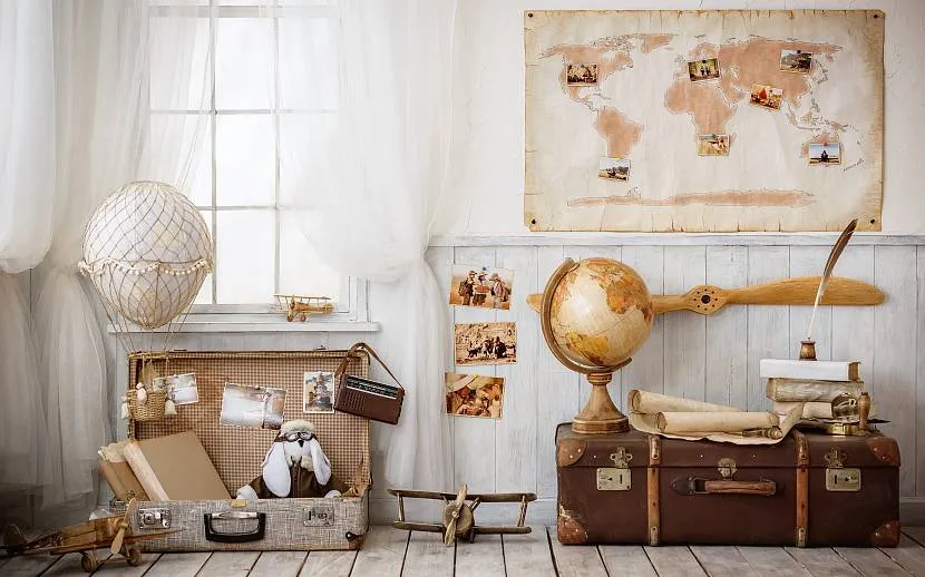 Винтаж. Такой стиль подразумевает состаренные поверхности, приглушенные оттенки и старинные детали. Старые чемоданы будут особенно уместно смотреться в немного изношенном виде, который подчеркивает возраст изделия.