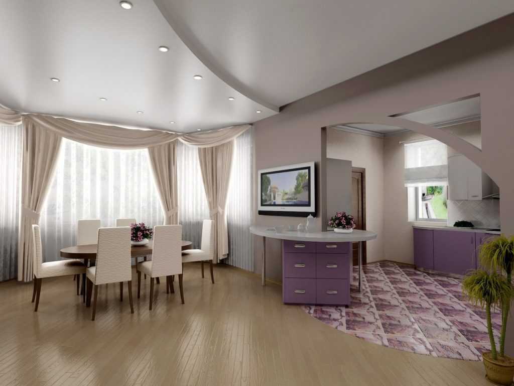Важным достоинством будет то, что ГКЛ можно применять совершенно самостоятельно. Его монтаж производится на каркас, что существенно уменьшит высоту помещения. Однако, профессиональные оформители разработали особый дизайн потолка из гипсокартона, который подходит для маленьких комнат – на фото ниже пример такого оформления.