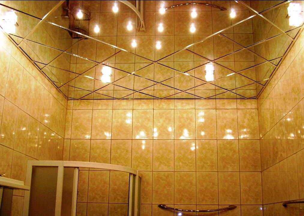 Отражающий потолок – подвесная конструкция с металлическим каркасом с закрепленными на нем зеркальными полотнами. Красиво, дорого, эффектно… и крайне небезопасно, особенно, если в доме живет юный футболист. Впрочем, можно вместо настоящего стекла использовать полистирольные панели с зеркальным эффектом. Такое решение идеально для холла, гостиной или ванной комнаты. Реально площадь уменьшится на несколько сантиметров, но визуально пространство «раздвинется», не только в высоту, а и в ширину.