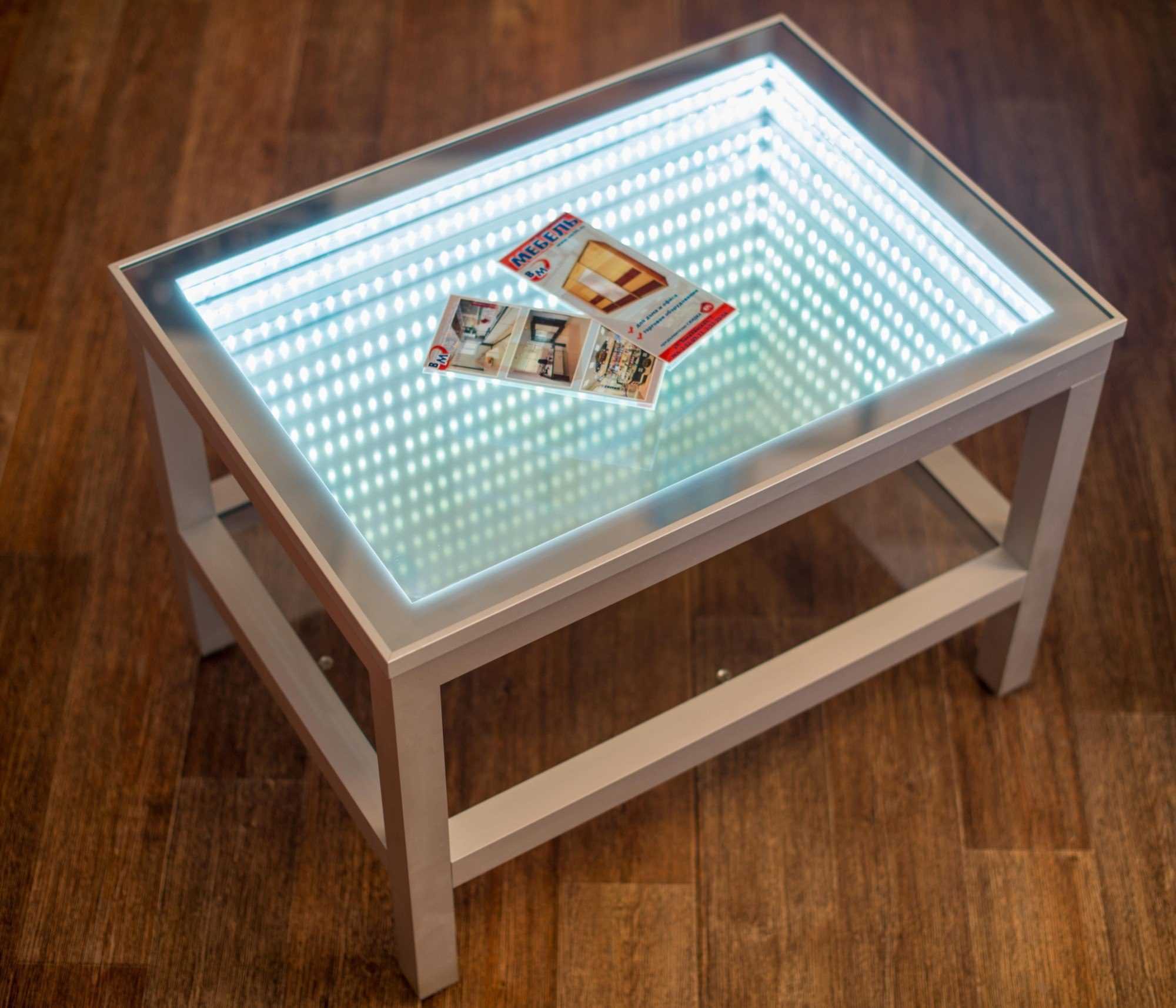 Рассмотрим изготовление более сложного, но наиболее безопасного и красивого светодиодного стола.