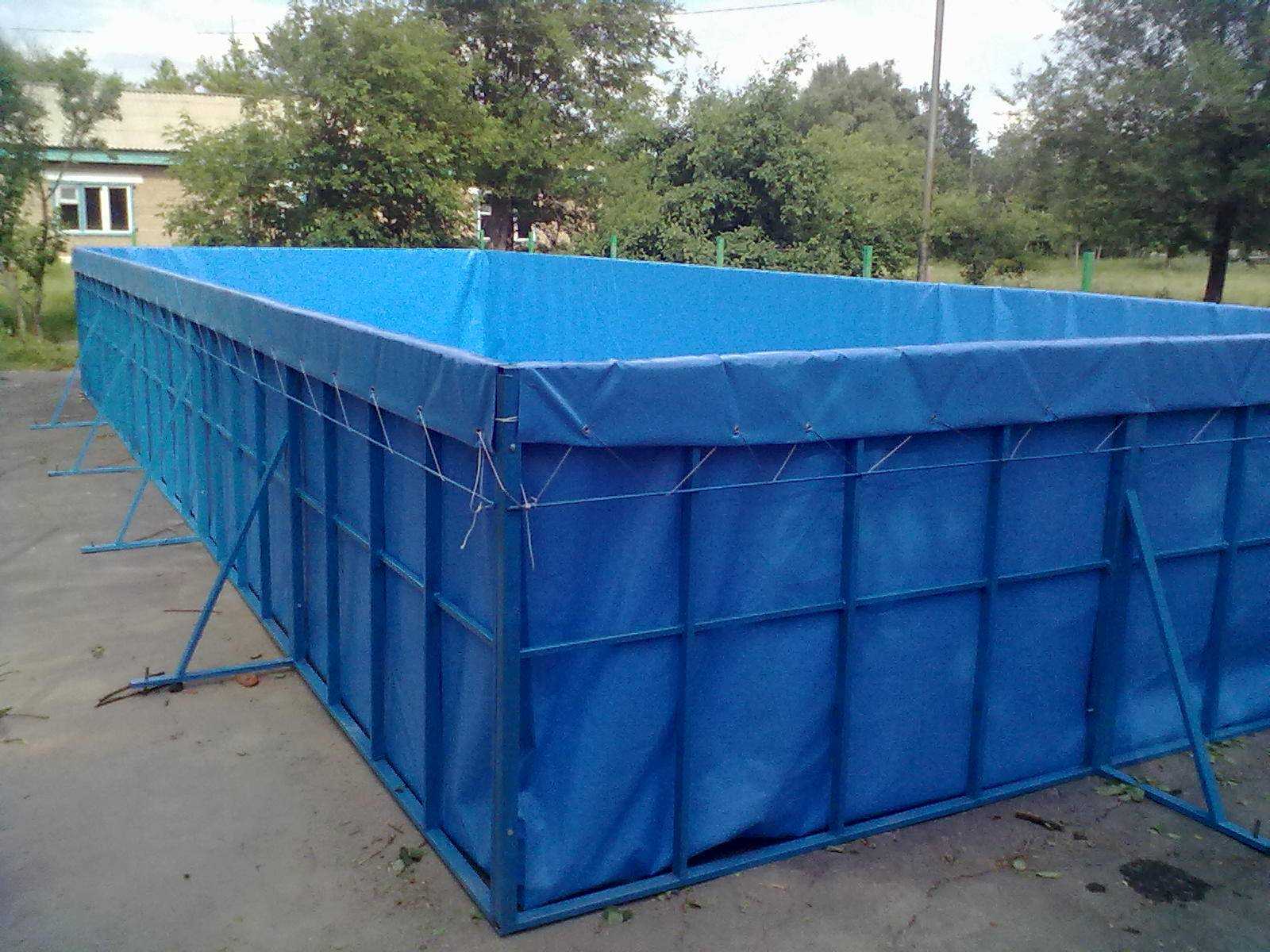 Обычно средний стандартный водоем с высотой бортов в 1 м на деревянном каркасе выполняется из тентовой ткани размером 4,5 на 2,0 м. В результате вы сможете налить в него примерно 8 тонн тёплой воды. При этом основой для бассейна может стать ткань ПВХ, из которой обычно в быту выполняют тенты для машин, навесы и надувные лодки.
